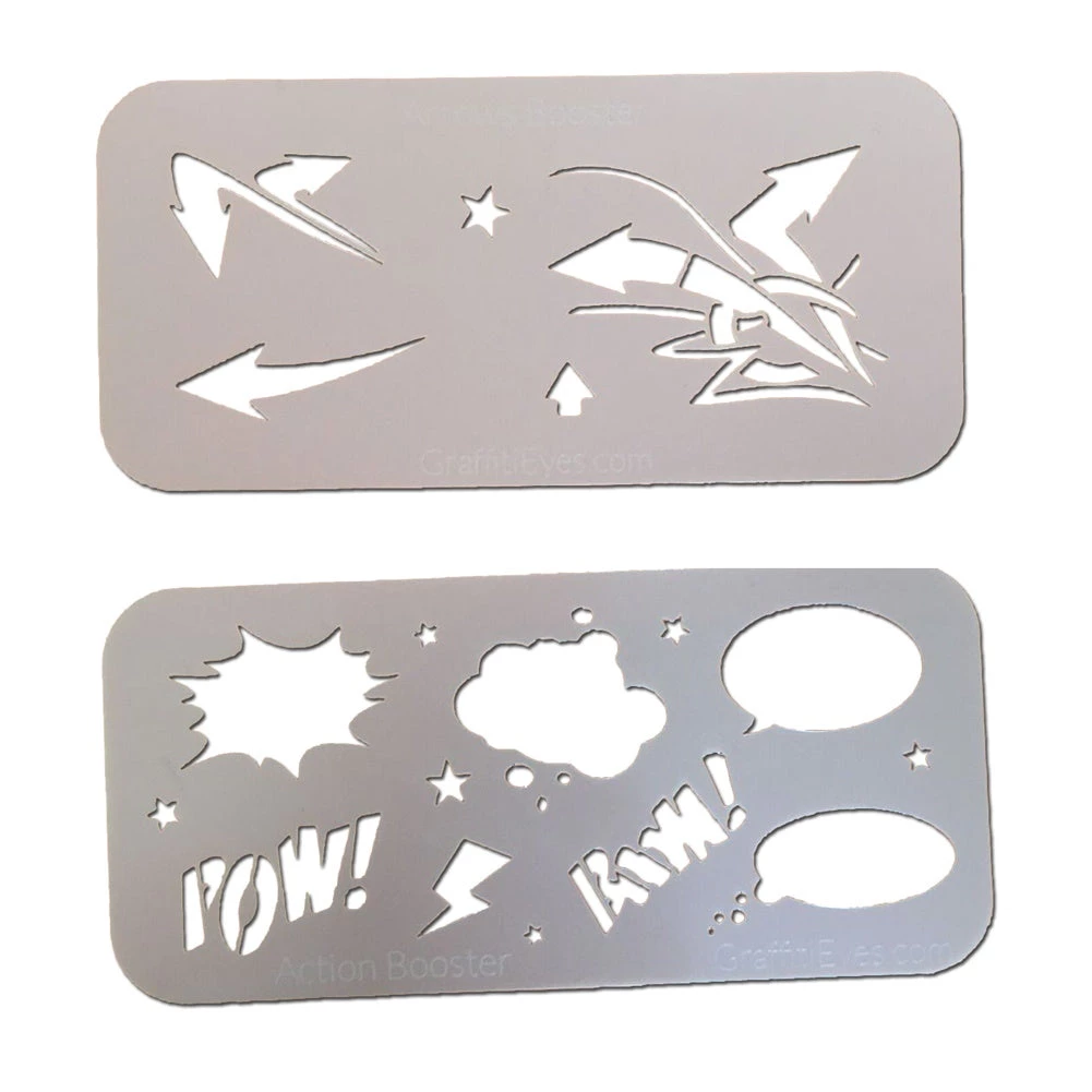 Learn more about application of GraffitiEyes Arrows & Action Bubbles Stencil :