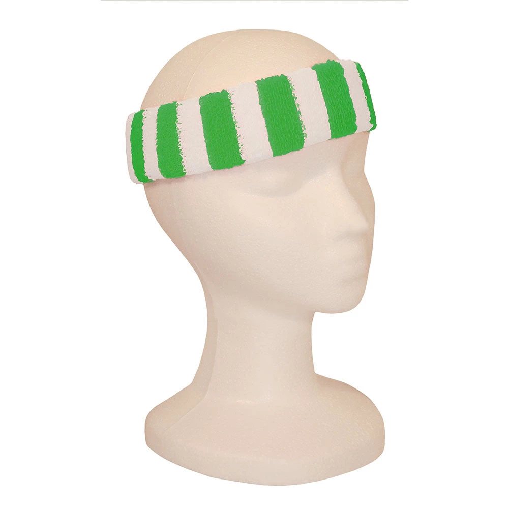 Check out these exciting colorful assortment of striped headband options! Made of 86% acrylic, 8% nylon and 6% elastic. You can pick up matching wrist bands here.