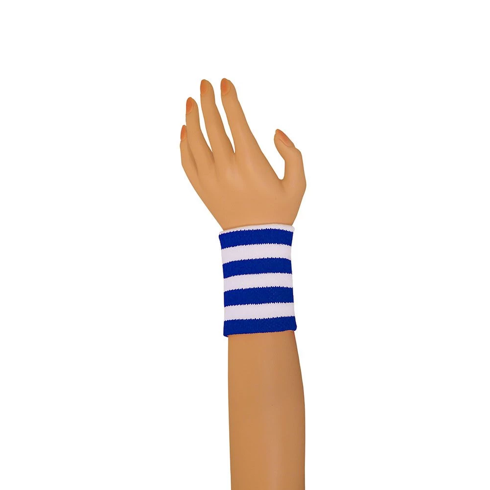 Check out these exciting colorful assortment of striped wristband options! Made of 86% acrylic, 8% nylon and 6% elastic. You can pick up matching head bands here.