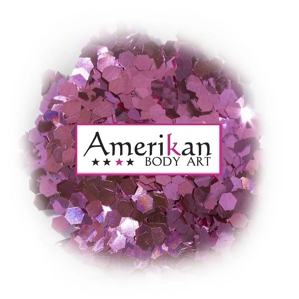 Pink Sapphire Chunky Glitter has vibrant pink glitter particles of 0.094″ Hex Size, perfect for adding glitter accents to your face and body art. Chunky Glitter should not be used near eyes. Also not recommended for use on small children. Comes in 1 oz bag.