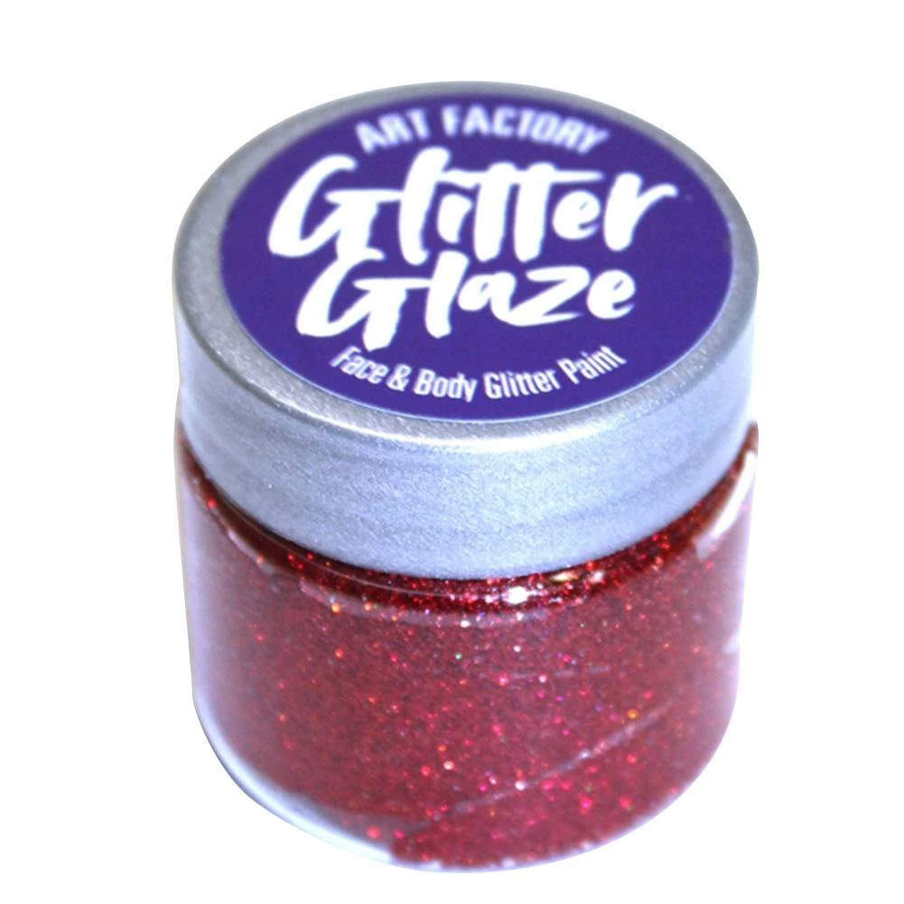 Art Factory Glitter Glaze Red Face & Body Paint can be used for glitter face and body painting. See all available colors available here.