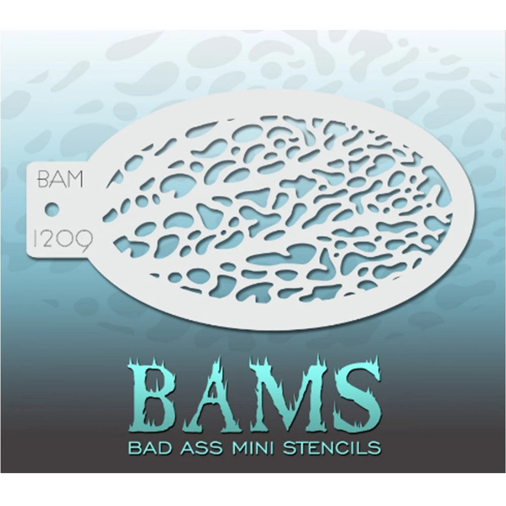 BAM 1209 Bad Ass Mini Stencils are 5″ x 3.5″ oval shaped stencils that can be easily stored in a chain. Chain not included.