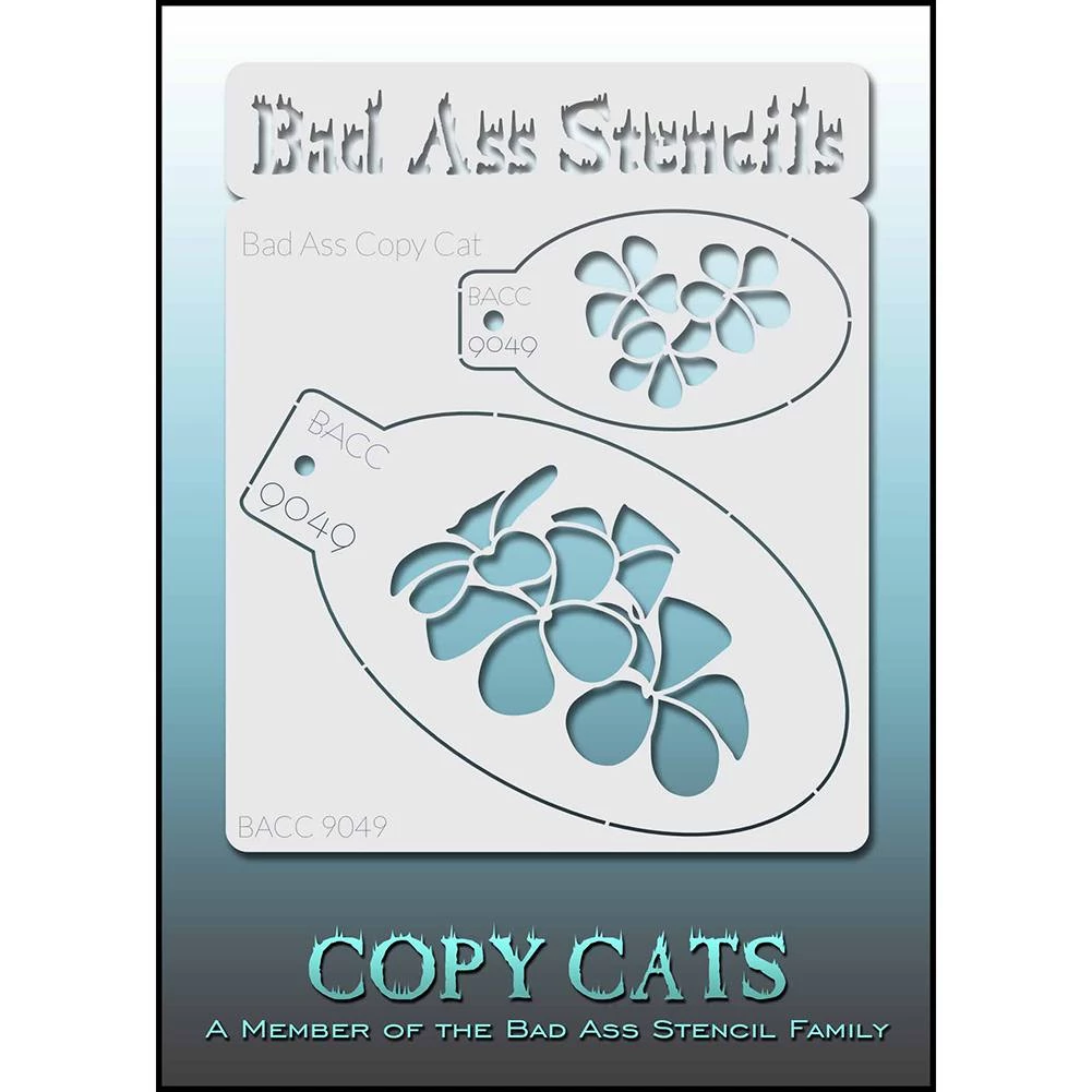 Bad Ass Copy Cat Stencils – (9049) work great for adding design details over face and body. Each sheet is 5.5″ x 3″ with two stencils that can be separated and used to create multiple designs based on same pattern. Each Copy Cat Stencil has one mini stencil (3.5″ x 5″) and one half ass stencil (3.3″ x 2″), both based on a common design pattern. Each stencil piece can be taken apart and used individually to create designs of different sizes on different parts of the body.