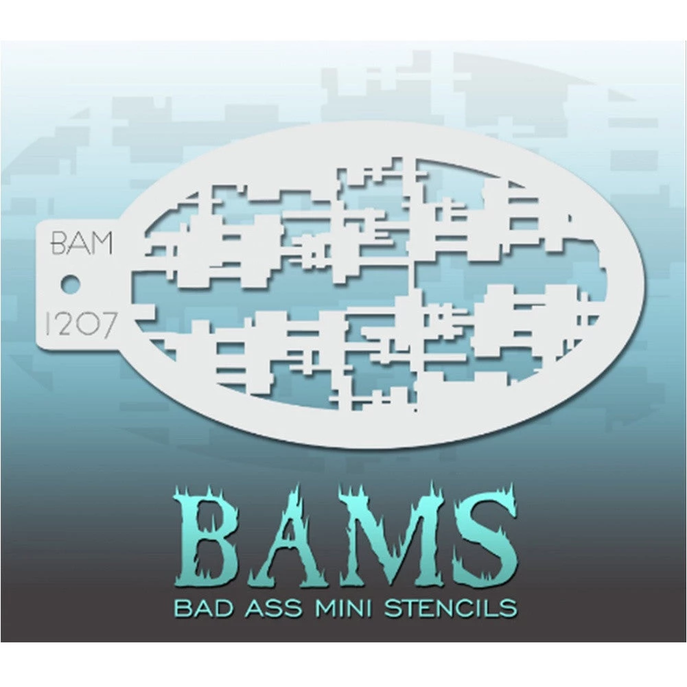 BAM 1207 Bad Ass Mini Stencils are 5″ x 3.5″ oval shaped stencils that can be easily stored in a chain. Chain not included.
