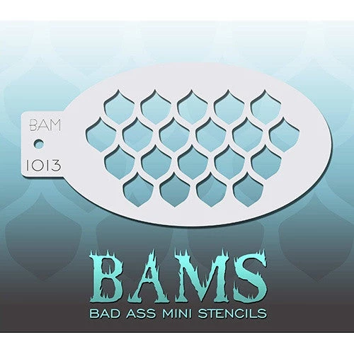 Fish Scales BAM1013 Bad Ass Mini Stencils are 5″ x 3.5″ oval shaped stencils that can be easily stored in a chain (Chain not included).