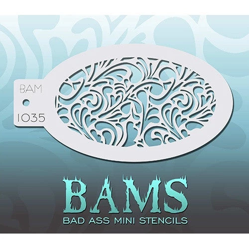Swirly Hearts BAM1035 Bad Ass Mini Stencils are 5″ x 3.5″ oval shaped stencils that can be easily stored in a chain (Chain not included).