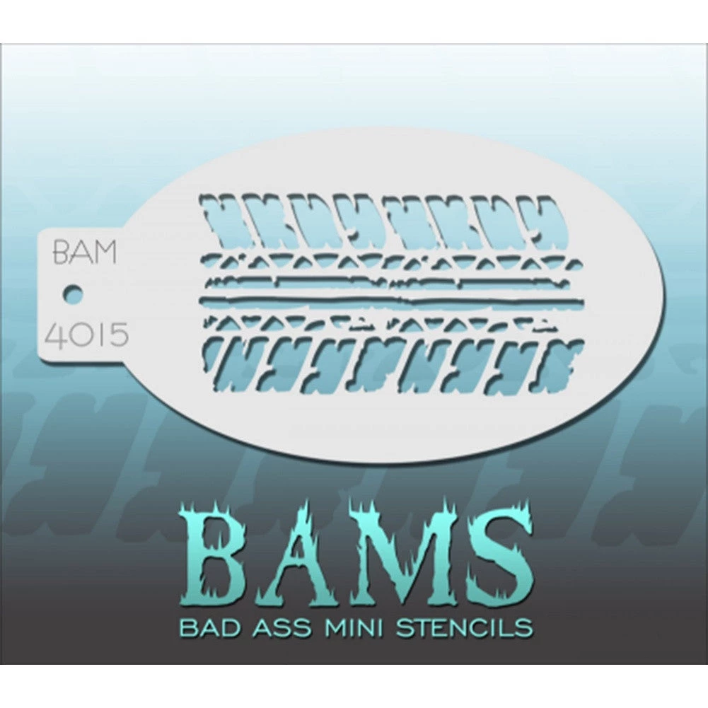 Tired Tread BAM 4015 Bad Ass Mini Stencils are 5″ x 3.5″ oval shaped stencils that can be easily stored in a chain (Chain not included).