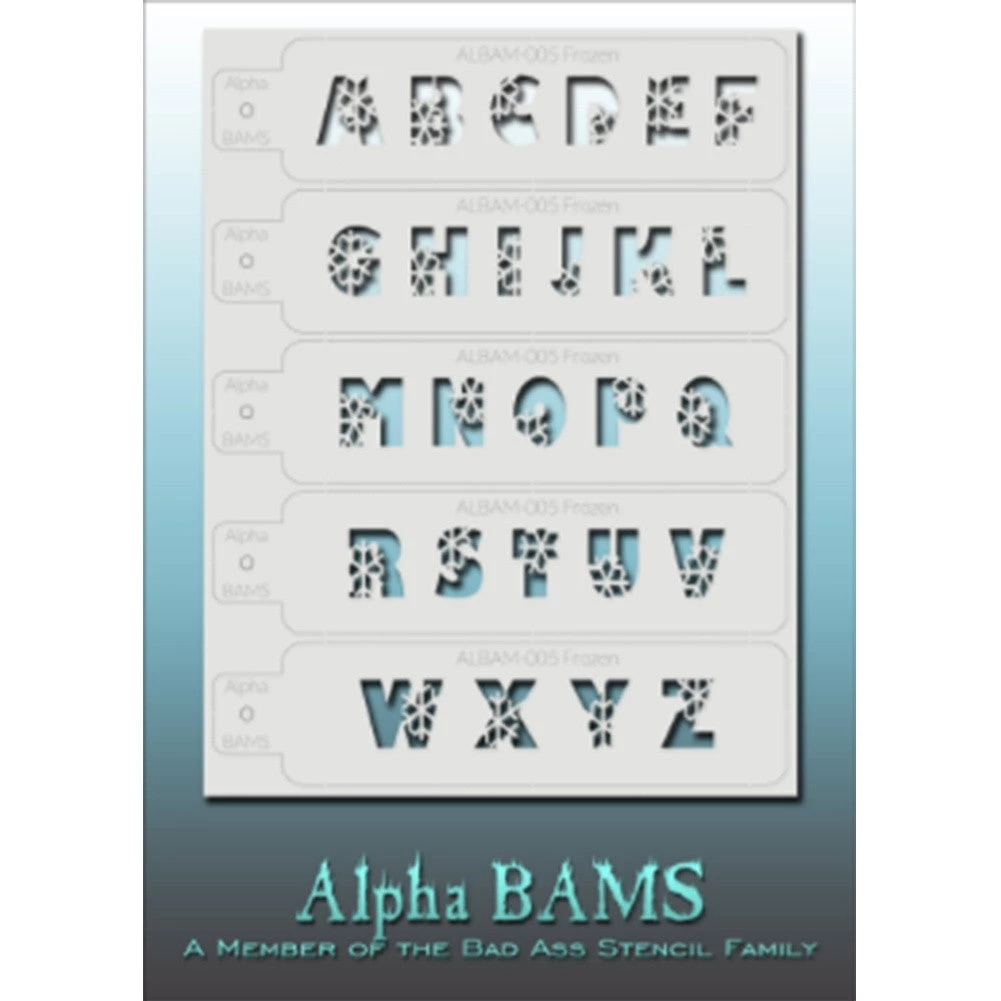 BAM Alpha Stencils – Frozen (ALBAM 005) are ideal for adding unique personalized details to your face and body art. Each Alpha BAM sheet is 8.5″ x 11″ and has an uppercase letter with height of approx. 1”.
