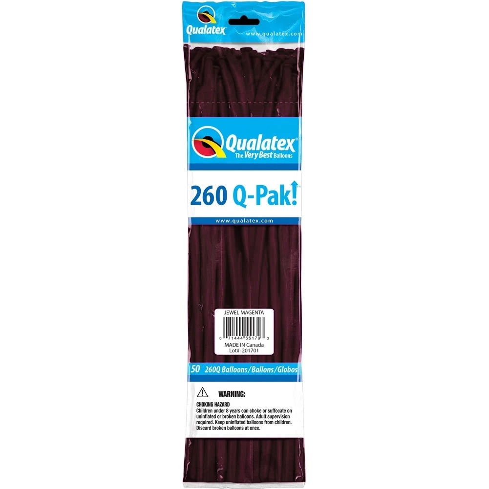 Professional quality balloons for shaping into animals and flowers. Great for parties, fairs and festivals. Qualatex Twisting balloons, 2 inch wide and 60 inch long. Jewel Magenta (50/bag).