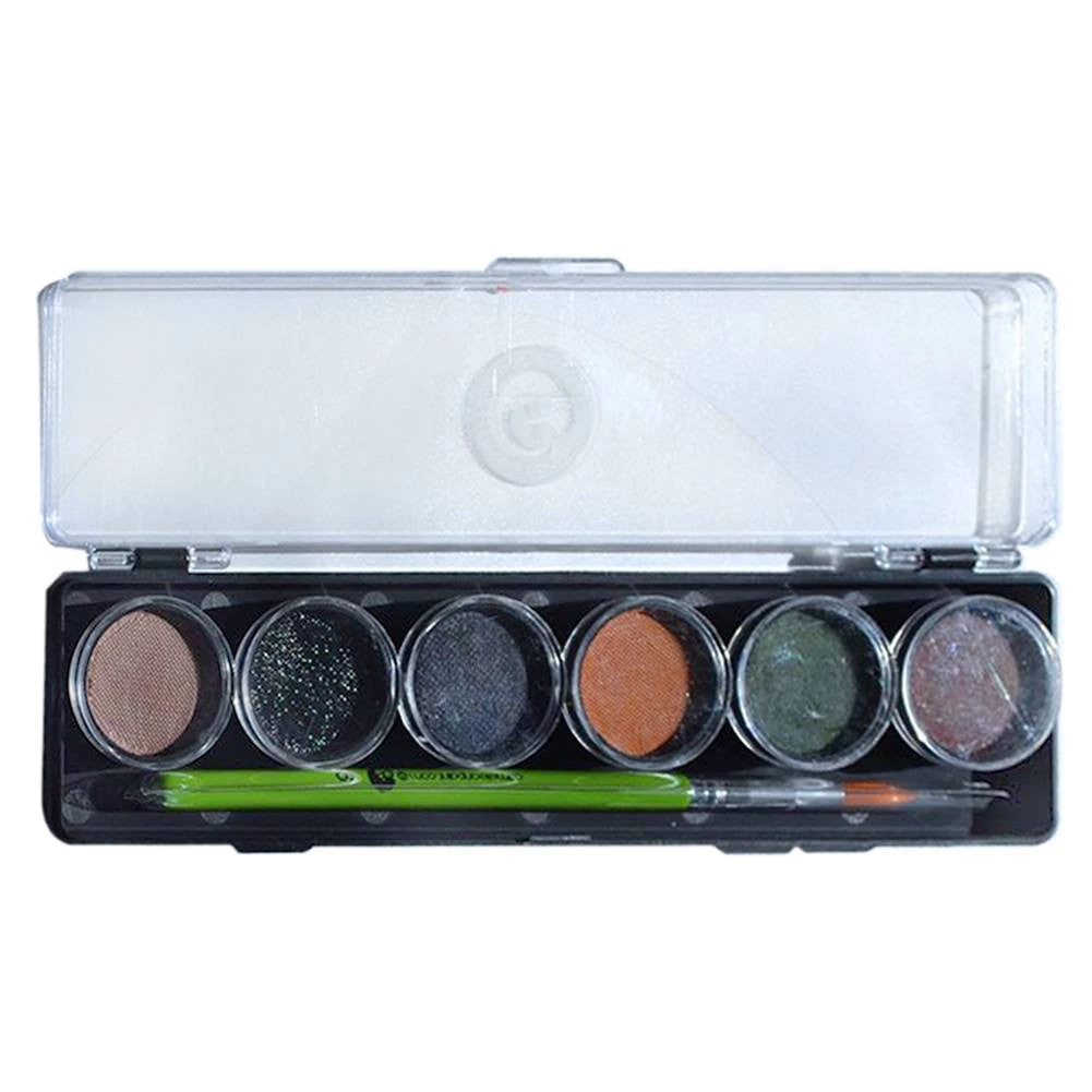 Cameleon 6 Color Scare Me Mini Face Paint Palettes contain six baseline colors, 8 grams each and a petal brush. 6 Color Bubble Box Palette is great for a variety of scary designs for costume parties, fairs and Halloween. Also ideal for professionals during events and workshops.