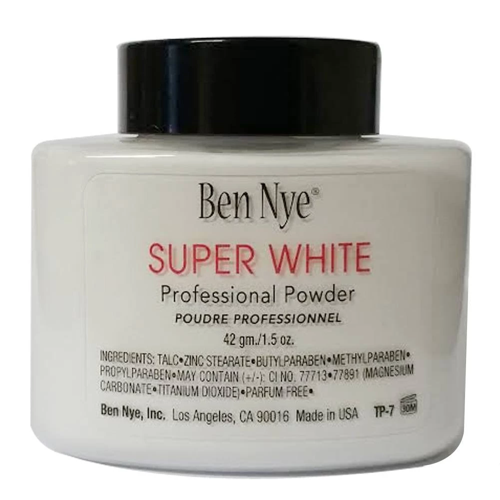 Ben Nye Super White Powder is blended with white pigment for EXTRA BRIGHT whites and also slows perspiration.