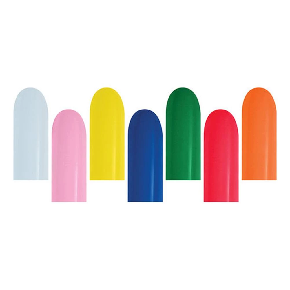 Betallatex 160B Solid Color Balloons are highly durable latex balloons for creating amazing animal balloons and sculptures. Contains 1″ x 60″ – Assortment of Fashion White, Bubble Gum Pink, Yellow, Royal Blue, Forest Green, Red, and Orange Balloons, 100 in a pack.