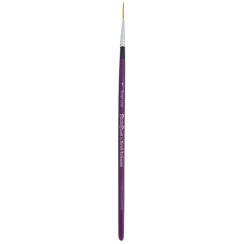 Blazin Brushes by renowned artist Marcela Bustamante are famous for their perfect strokes, signature purple, wooden handles and long lasting synthetic, taklon bristles. Blazin Script Liner 1 Brush works exceptionally well for painting swirls, twirls, flowers and teardrops. Liner brushes are also great with outlining and detailing. Includes one liner brush, 1/16″ wide at the ferrule.