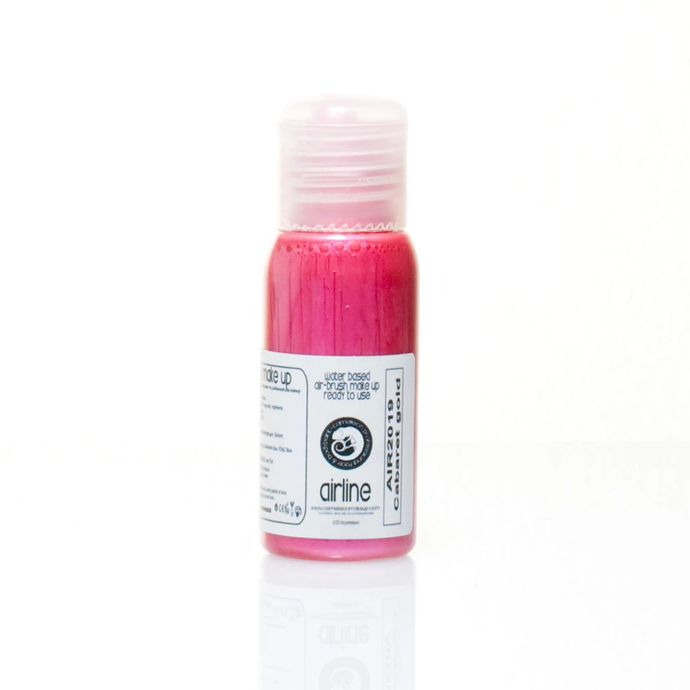 Cameleon Airline Metallic Paint – Cabaret Golden Pink is a highly pigmented, water based, liquid or airbrush makeup that can deliver vibrant coverage in face and body art. Cameleon Metallic colors are ideal for adding shining effects to your designs