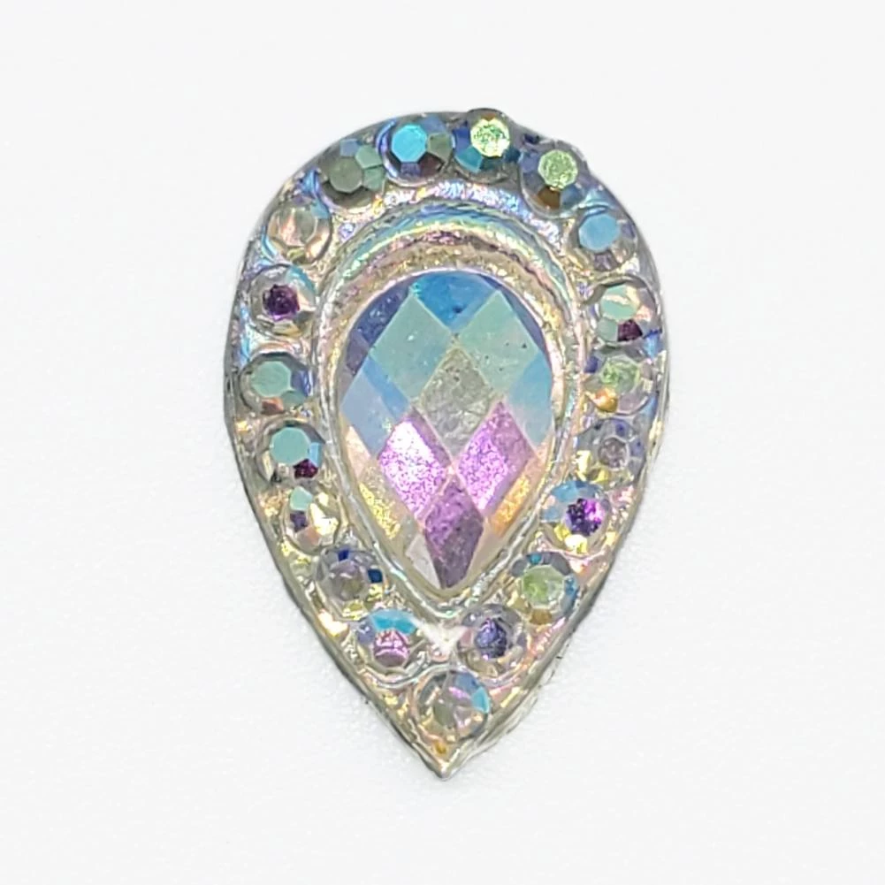 Tear drop shaped, flat backed resin rhinestones in AB shade, will instantly add bling effects to face paint designs. These reusable resin blings are perfect to make your face paint designs pop. Rhinestone gems are also great for clowns who wear jewels. 12 mm rhinestones come in approx. 20/pack.