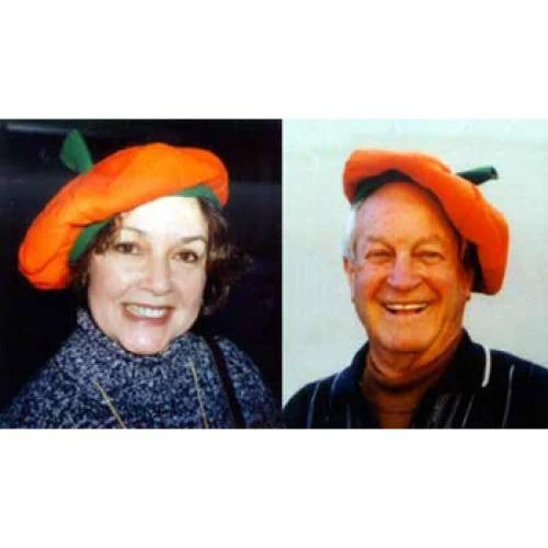 Cozy polyester fleece pumpkin berets are great for events all autumn long! Orange felt pumpkin beret with green stem and trim. Has adjustable draw string to fit most. About 11 inches in diameter.