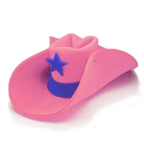 Giant pink 50 gallon foam cowboy hat available in bright colors with contrasting colored star and band. Made of 1/2″ thick foam, the cowboy hats brim measures 28″ and about 8″ high and is a one size fits all for adults or even larger children. This big cowboy hat is perfect for cowboy stage props or a giant cowboy costume for a rodeo near you! Try wearing with our silver colored plastic Jumbo Sheriff’s Badge and wielding Bang Guns or a giant pistol (see below)!