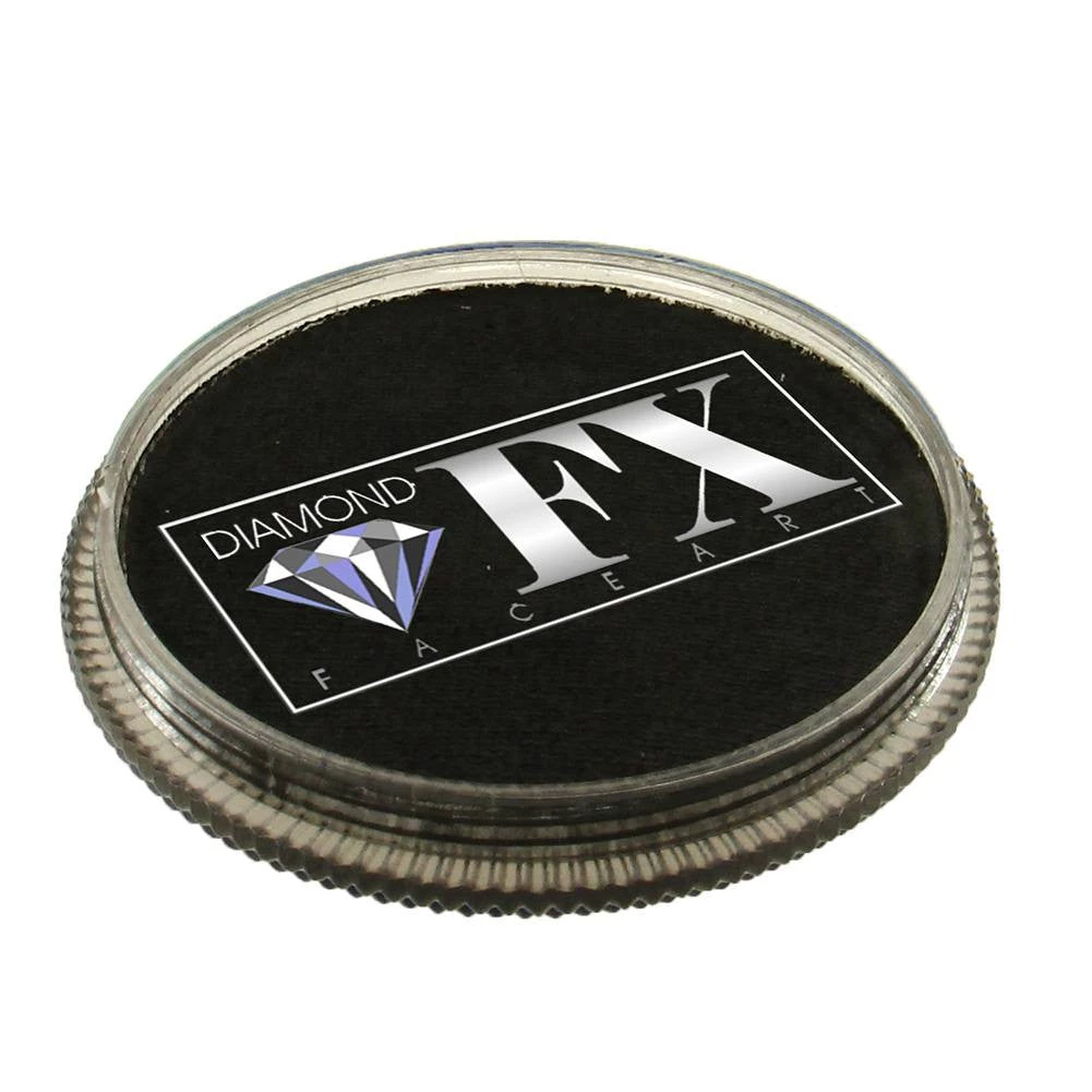 Diamond FX Metallic Black works exceptionally well for outlining your designs thereby making them stand out! Diamond FX Metallic Face Paints are perfect for adding a shiny finish to your face painting designs. Diamond FX Metallic Face Paint is a densely pigmented wax-based professional face paint. Diamond FX Metallic Face Paint gives superb, opaque coverage and lasts longer without fading or cracking. It is perfume-free and stays gentle on skin. Retains consistency even when painted over other colors. Ideal for line work.