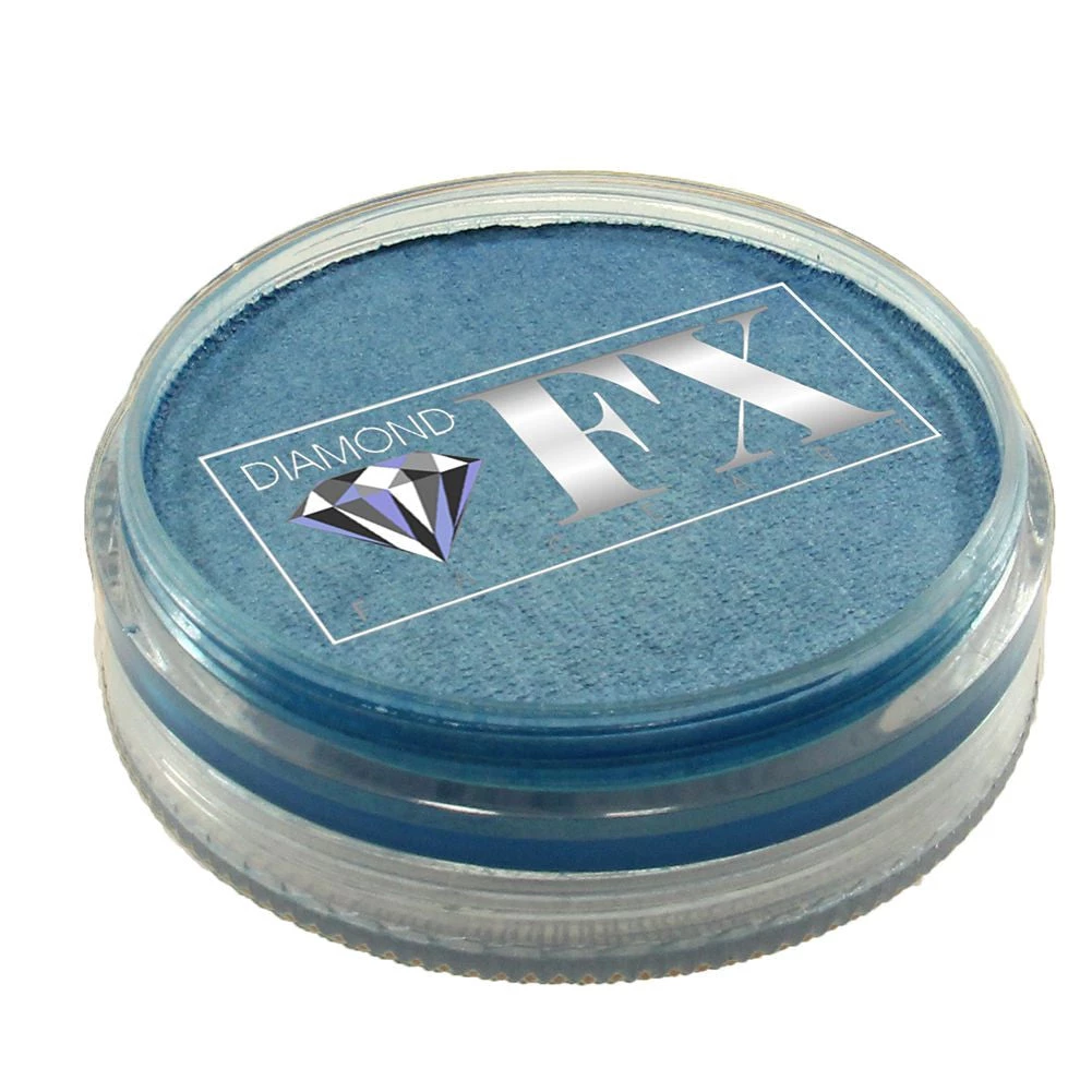 Diamond FX Metallic Baby Blue adds amazing effects to your sky, winter, dolphin or any other underwater design! Diamond FX Metallic Face Paints are perfect for adding a shiny finish to your face painting designs. Diamond FX Metallic Face Paint is a densely pigmented wax-based professional face paint. Diamond FX Metallic Face Paint gives superb, opaque coverage and lasts longer without fading or cracking. It is perfume-free and stays gentle on skin. Retains consistency even when painted over other colors. Ideal for line work.