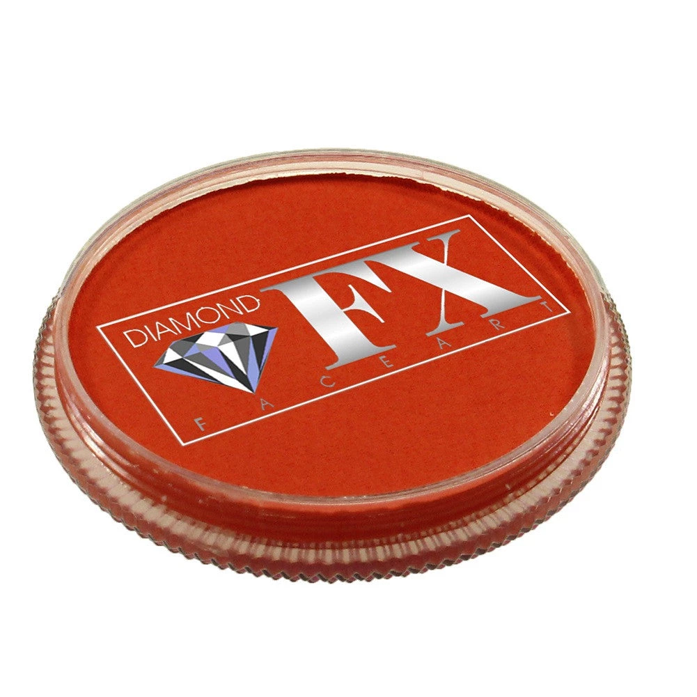 Diamond FX Essential Orange is a great choice for butterfly, flame and tiger designs. Diamond FX Essential Face Paint is a densely pigmented wax-based professional face paint. Diamond FX Essential Face Paint gives superb, opaque coverage and lasts longer without fading or cracking. It is perfume-free and stays gentle on skin. Perfect for line work, blending or layering. Retains brightness even when painted over other colors.
