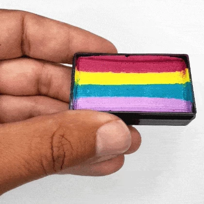 Fusion Body Art Split Cakes are multi colored rainbow cakes that can be used to create colorful designs with fewer brush or sponge strokes. Fusion Split Cakes come in combinations of bold, vivid colors to paint beautiful designs for any occasion, event, party, Halloween, cosplay, fair and more!