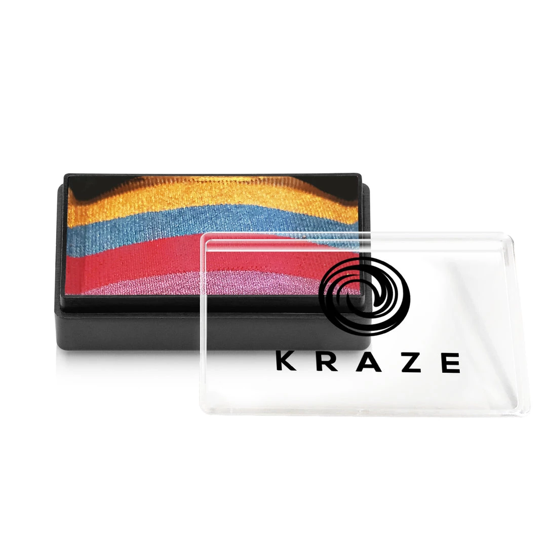 Kraze heavily pigmented, water activated colors are very smooth and are easy to apply and remove. Kraze Paints dry fast to a smudge-resistant, opaque coverage. Flexes with skin movements without cracking. Kraze Metallic colors are great for adding shimmer accents to your designs. Kraze FX One Stroke Cakes are easy to apply with a slightly moistened brush. Pick up multiple colors by swiping a flat brush on the surface of the cake in one direction and apply on skin. Kraze Paints can be removed with mild soap and water using a sponge or wash cloth.