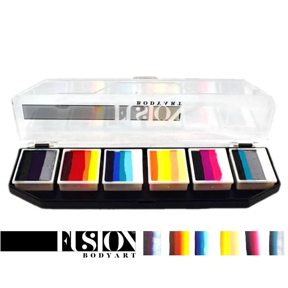 Fusion Body Art heavily pigmented, water based colors are very smooth and are easy to apply and remove. Fusion Paints dry fast to a smudge-resistant, opaque coverage.