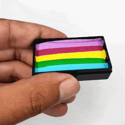 Fusion Body Art Split Cakes are multi colored rainbow cakes that can be used to create colorful designs with fewer brush or sponge strokes. Fusion Split Cakes come in combinations of bold, vivid colors to paint beautiful designs for any occasion, event, party, Halloween, cosplay, fair and more!