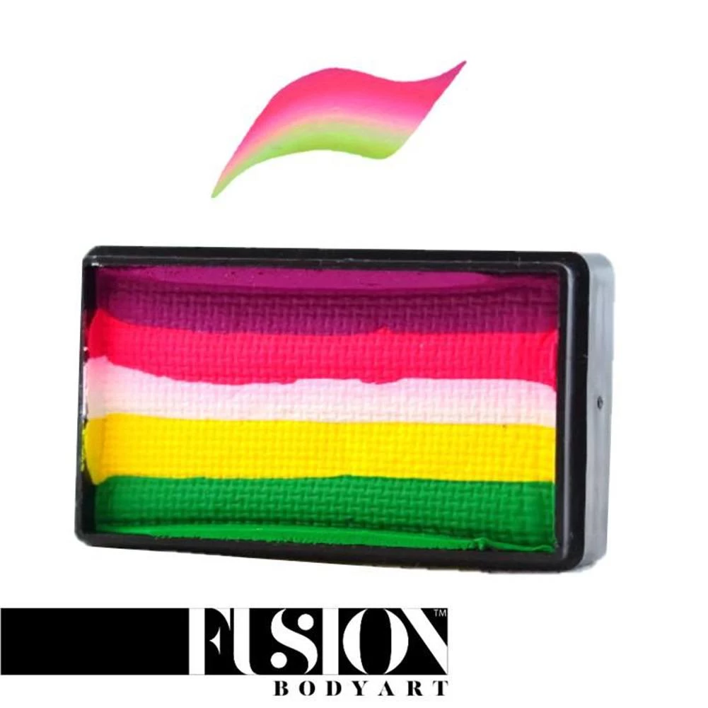 Fusion Body Art Split Cakes are multi colored rainbow cakes that can be used to create colorful designs with fewer brush or sponge strokes. Fusion Split Cakes come in combinations of bold, vivid colors to paint beautiful designs for any occasion, event, party, Halloween, cosplay, fair and more!