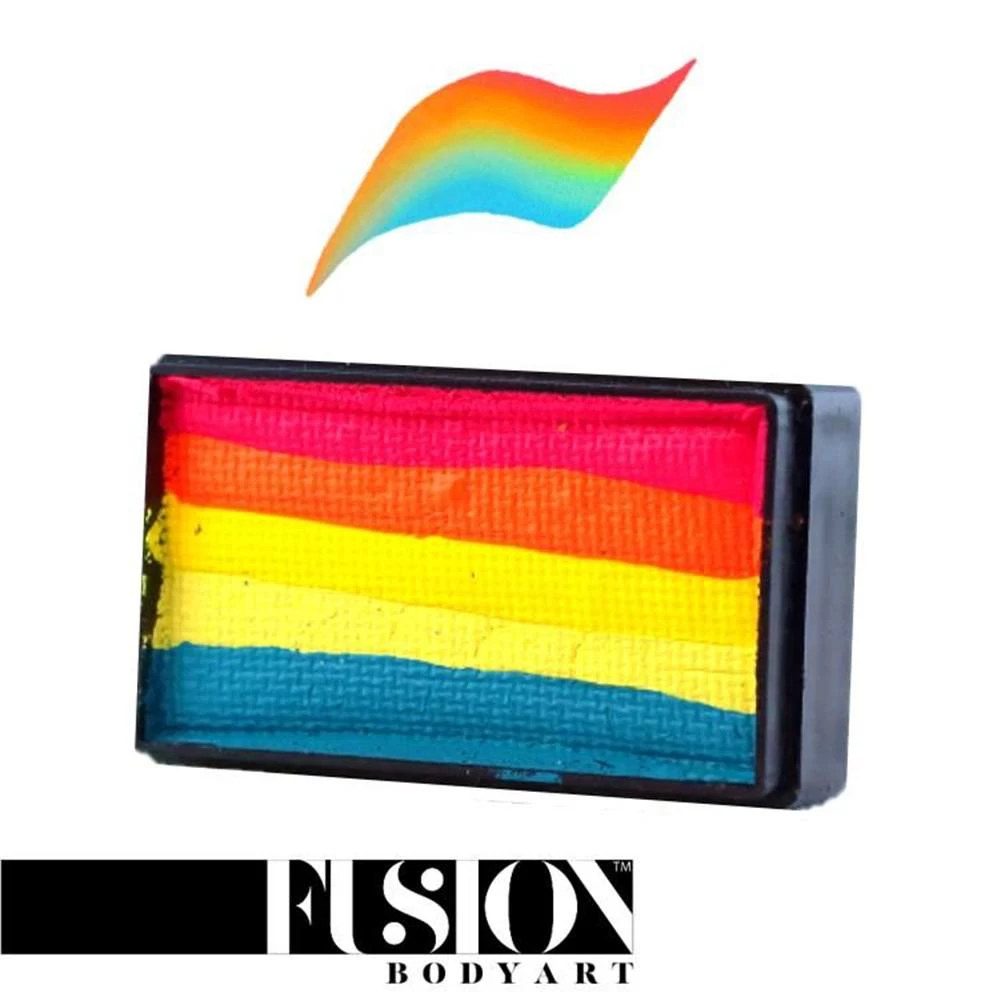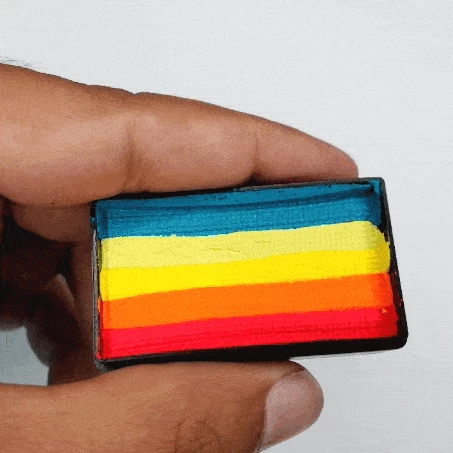 Fusion Body Art Split Cakes are multi colored rainbow cakes that can be used to create colorful designs with fewer brush or sponge strokes. Fusion Split Cakes come in combinations of bold, vivid colors to paint beautiful designs for any occasion, event, party, Halloween, cosplay, fair and more!