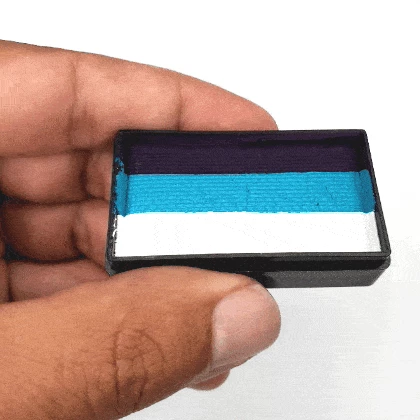 Split Cakes are easily to apply with a slightly moistened flat brush or a face painting sponge. Multiple colors can be easily picked up with a single stroke over the cake, once in each direction.