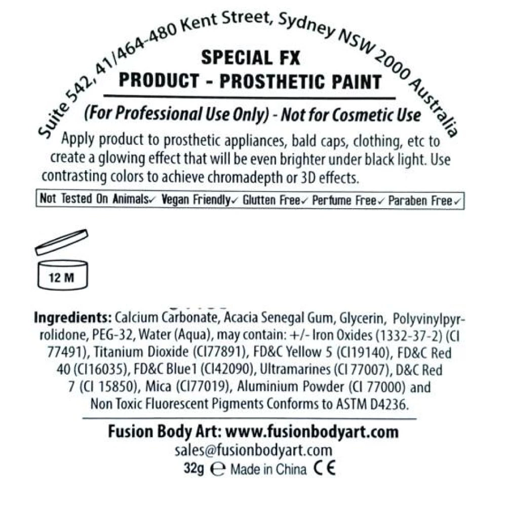 Fusion Body Art Paints are made with high quality, US FDA & EU compliant ingredients that are safe to use anywhere in the body. Fusion Paints are hypoallergenic and free of perfume, lanolin, gluten or paraben. Fusion formula is vegan; made without any animal based ingredients without any testing on animals.