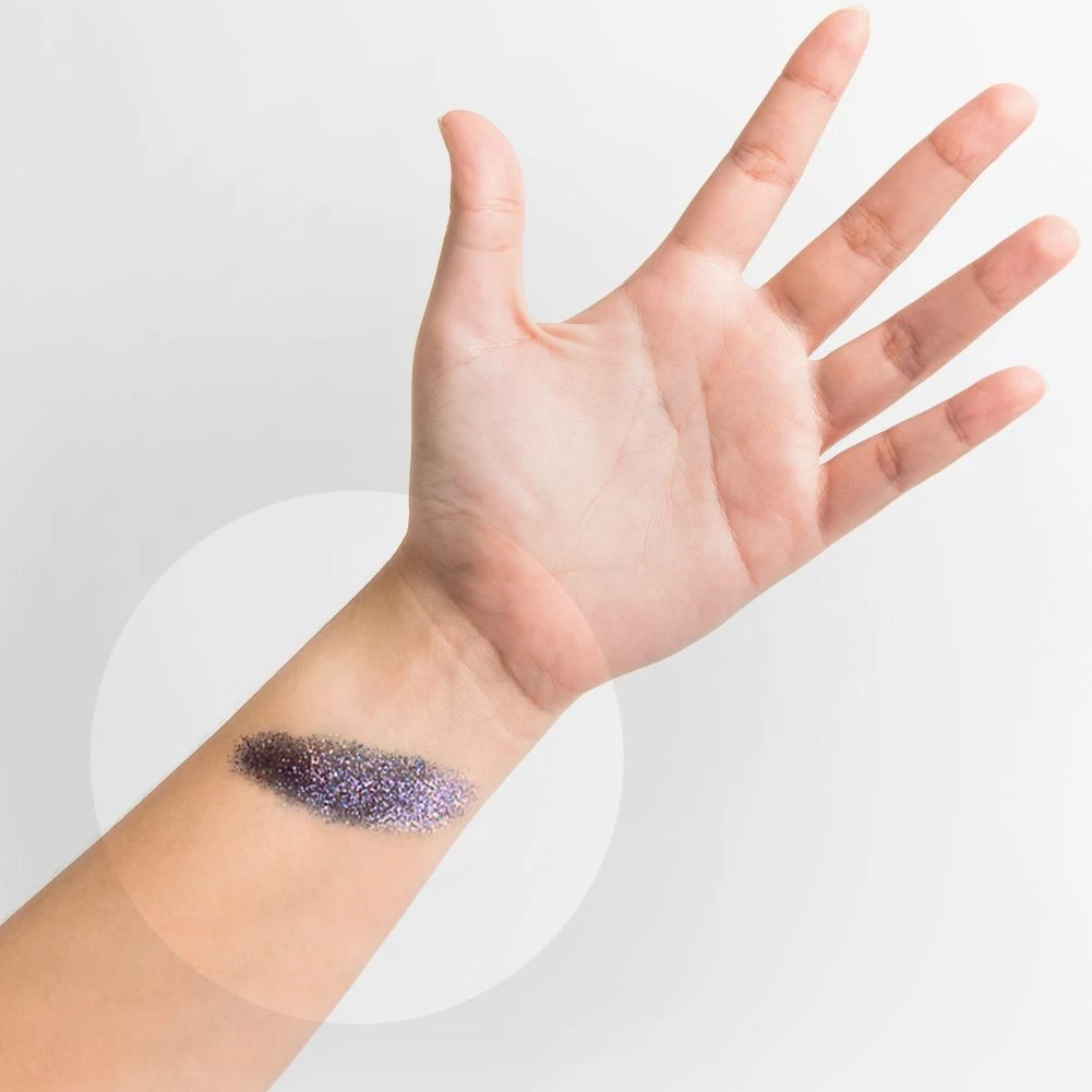 Glitter Creme is made of 0.008 hex fine polyester glitter, but has small amounts of 0.025 hex glitter for extra dimension. While it is safe to use for body painting, caution is recommended for use on face. Not recommended for use near eyes, especially for children.