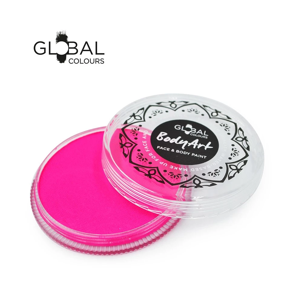 Global Body Art Neon Magenta face paints are heavily pigmented, water based cakes that work great for blending or line work. Global Neon colors are bright under normal light and shine intensely under blacklight. Global Face Paints are very smooth and are easy to apply and remove. Global Body Art’s special formulation ensures that the face paint gives consistent performance over and over again. Global Neon Colors give sheerer coverage than standard colors. Comes in 32 gram size.