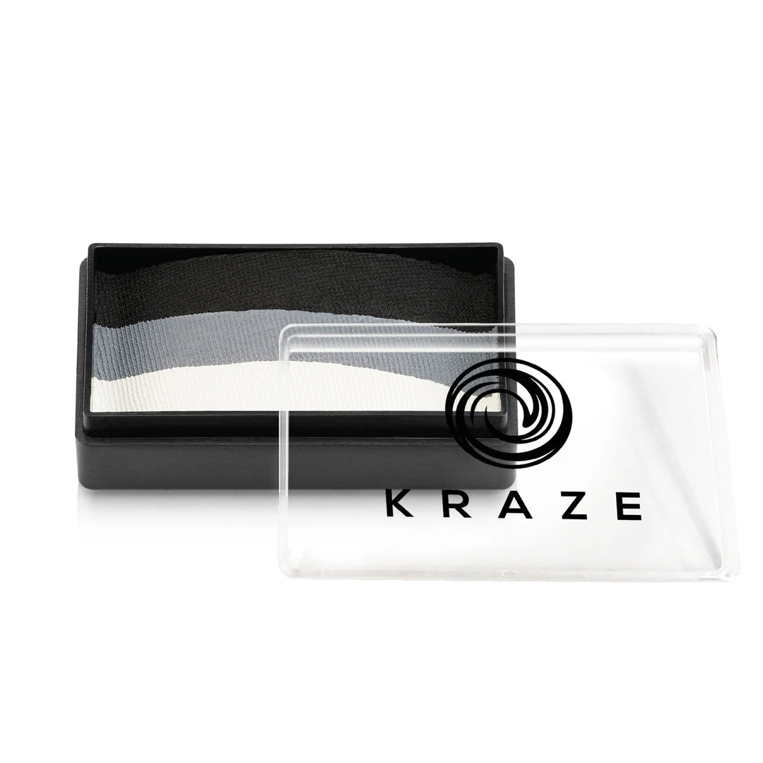 Kraze heavily pigmented, water activated colors are very smooth and are easy to apply and remove. Kraze Paints dry fast to a smudge-resistant, opaque coverage. Flexes with skin movements without cracking. Kraze FX One Stroke Cakes are easy to apply with a slightly moistened brush. Pick up multiple colors by swiping a flat brush on the surface of the cake in one direction and apply on skin. Kraze Paints can be removed with mild soap and water using a sponge or wash cloth.