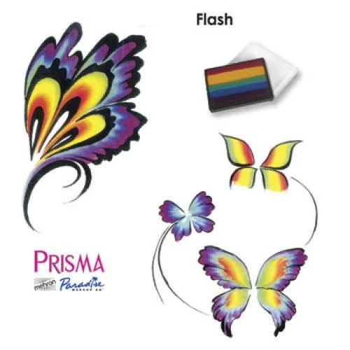 The brilliant, multi-color Prisma Blend split cake was designed by the Canadian face and body artist Jinny – Makeup Artiste or Genevieve Houle specifically for Paradise. Each Prisma Cake has a large surface area with equal amounts of each color so they can be applied with a sponge or large brush.