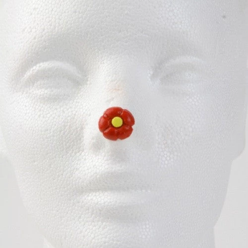 Jim Howle’s acrylic-latex compound noses. Size D Flower nose tips made of an acrylic-coated latex core, with gloss red coating. Approximately the size of a US dime coin, measuring about 11/16 inch.