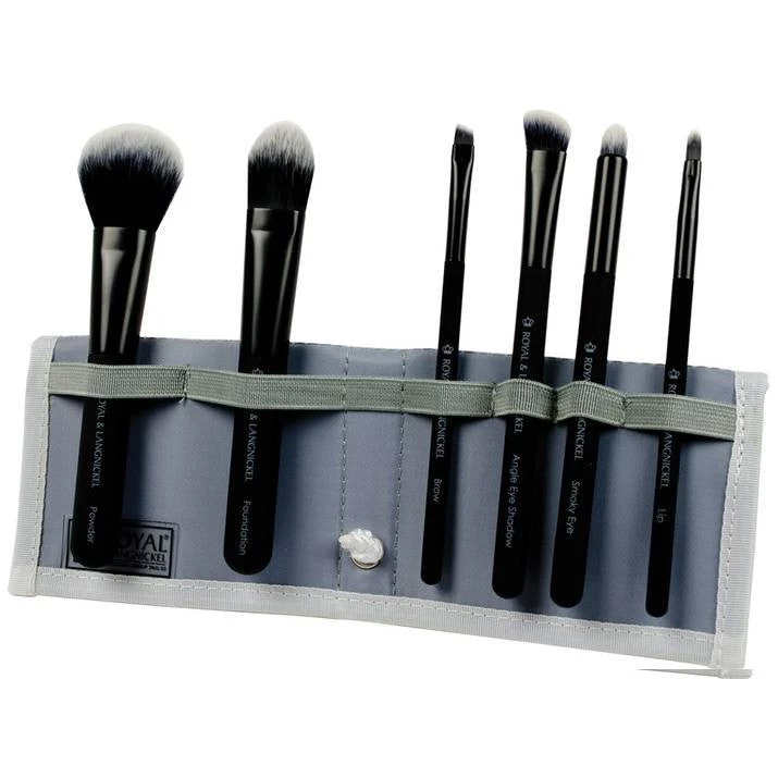 Royal and Langnickel MODA Total Face Black Brush Set includes 6 brushes that are perfect for a variety of face makeup applications. Royal brushes are high quality, handmade brushes made with unique craftsmanship and detailing. MODA brushes come with soft, long lasting acrylic handles. With their matching handles, ferrules and color-tipped synthetic bristles, they are a stylish and elegant addition to your makeup collection. This 7 piece set includes powder brush, foundation brush, angle eye shadow brush, smoky eye brush, brow brush and lip brush, and a portable and easy to access travel case.