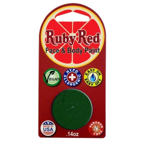 Ruby Red Green face paint comes in 0.14 ounce (2 ml) size that will easily cover 10 full faces or at least 100 cheek art designs (2in x 2in size).