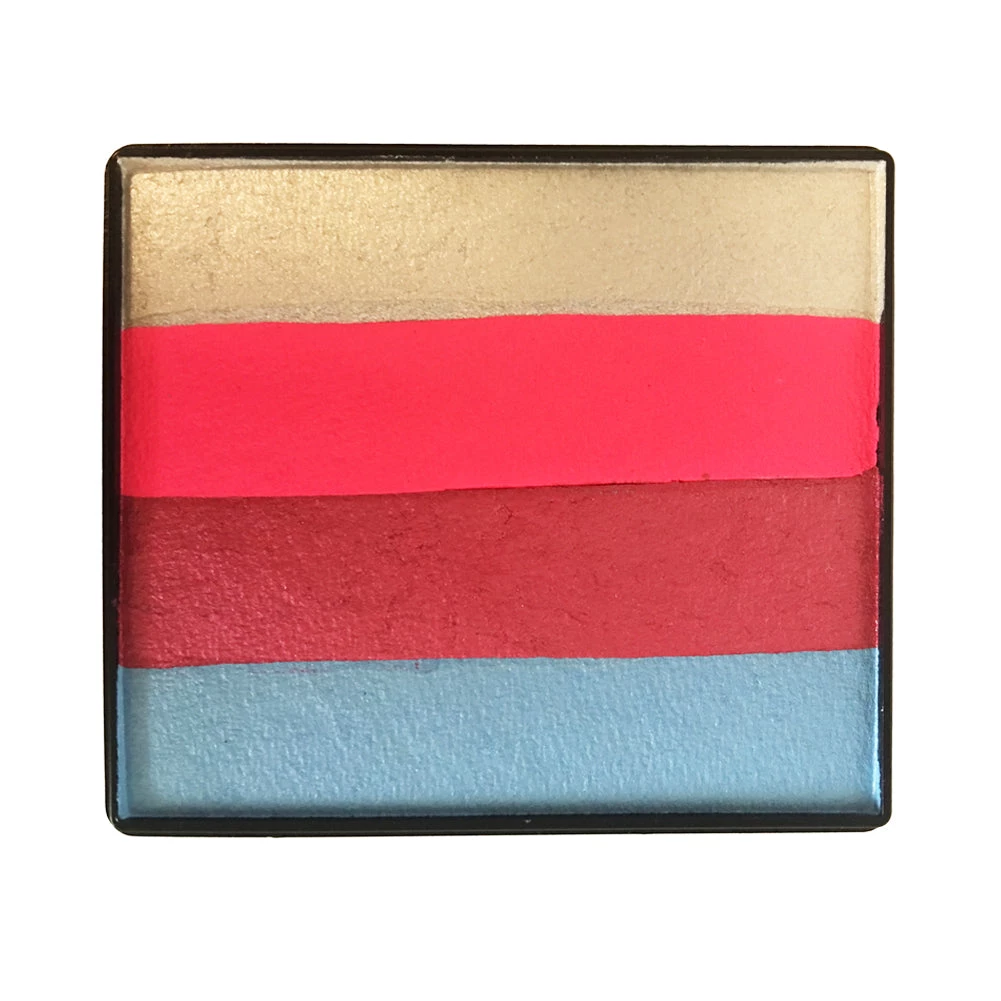 Pixie Pie Split Cakes have changed the way we face paint. Rainbow cakes are multi-colored cakes of face paint that allow you to lay down several colors at once. Just one stroke with a brush and apply to skin, and you have a rainbow. Rainbow cakes are excellent for base work for any design.