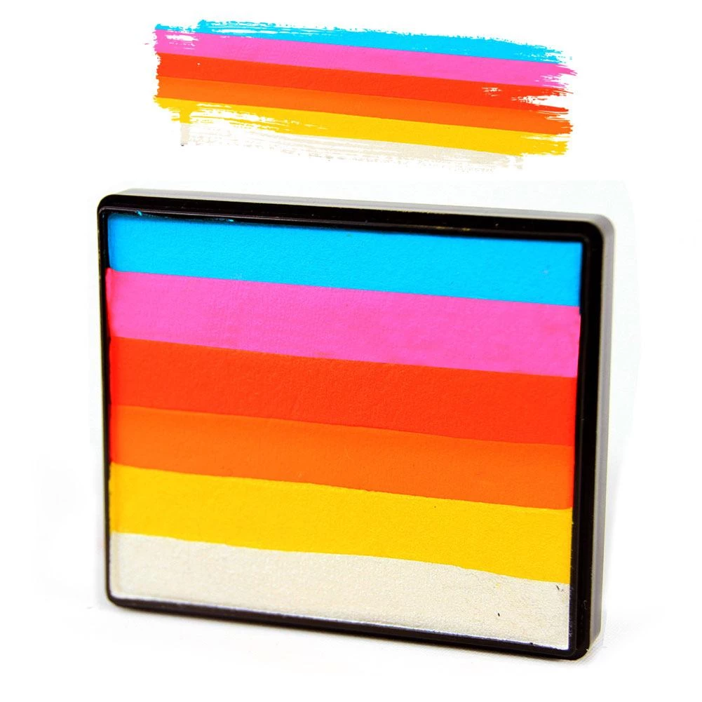 Rainbow Split Cakes have changed the way we face paint. Rainbow cakes are multi-colored cakes of face paint that allow you to lay down several colors at once. Just one stroke with a brush and apply to skin, and you have a rainbow. Rainbow cakes are excellent for base work for any design.