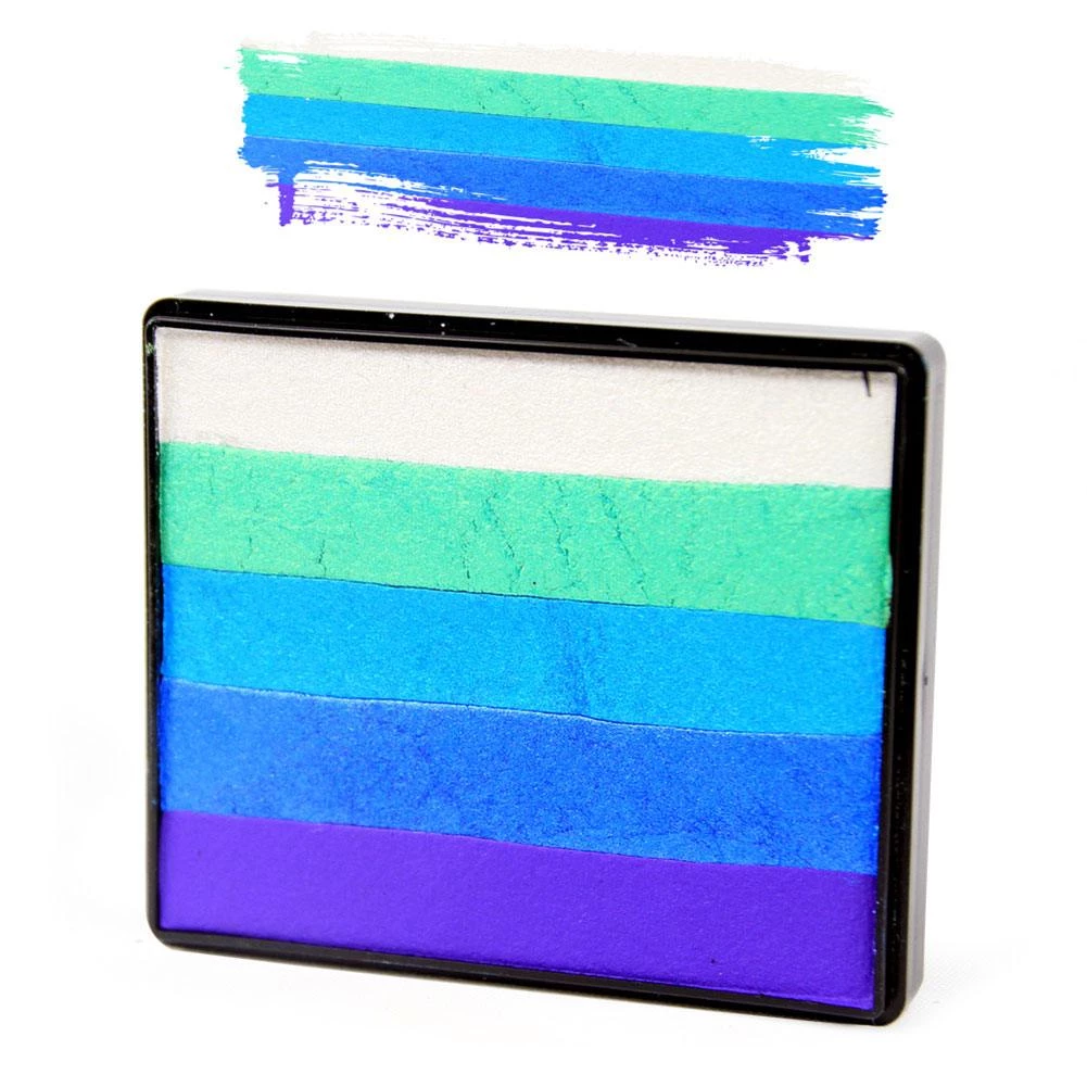 Rainbow Split Cakes have changed the way we face paint. Rainbow cakes are multi-colored cakes of face paint that allow you to lay down several colors at once. Just one stroke with a brush and apply to skin, and you have a rainbow. Rainbow cakes are excellent for base work for any design.