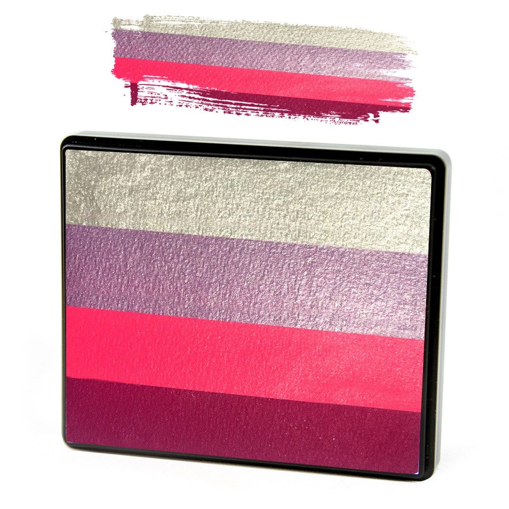 Rainbow Split Cakes have changed the way we face paint. Rainbow cakes are multi-colored cakes of face paint that allow you to lay down several colors at once. Just one stroke with a brush and apply to skin, and you have a rainbow. Rainbow cakes are excellent for base work for any design.