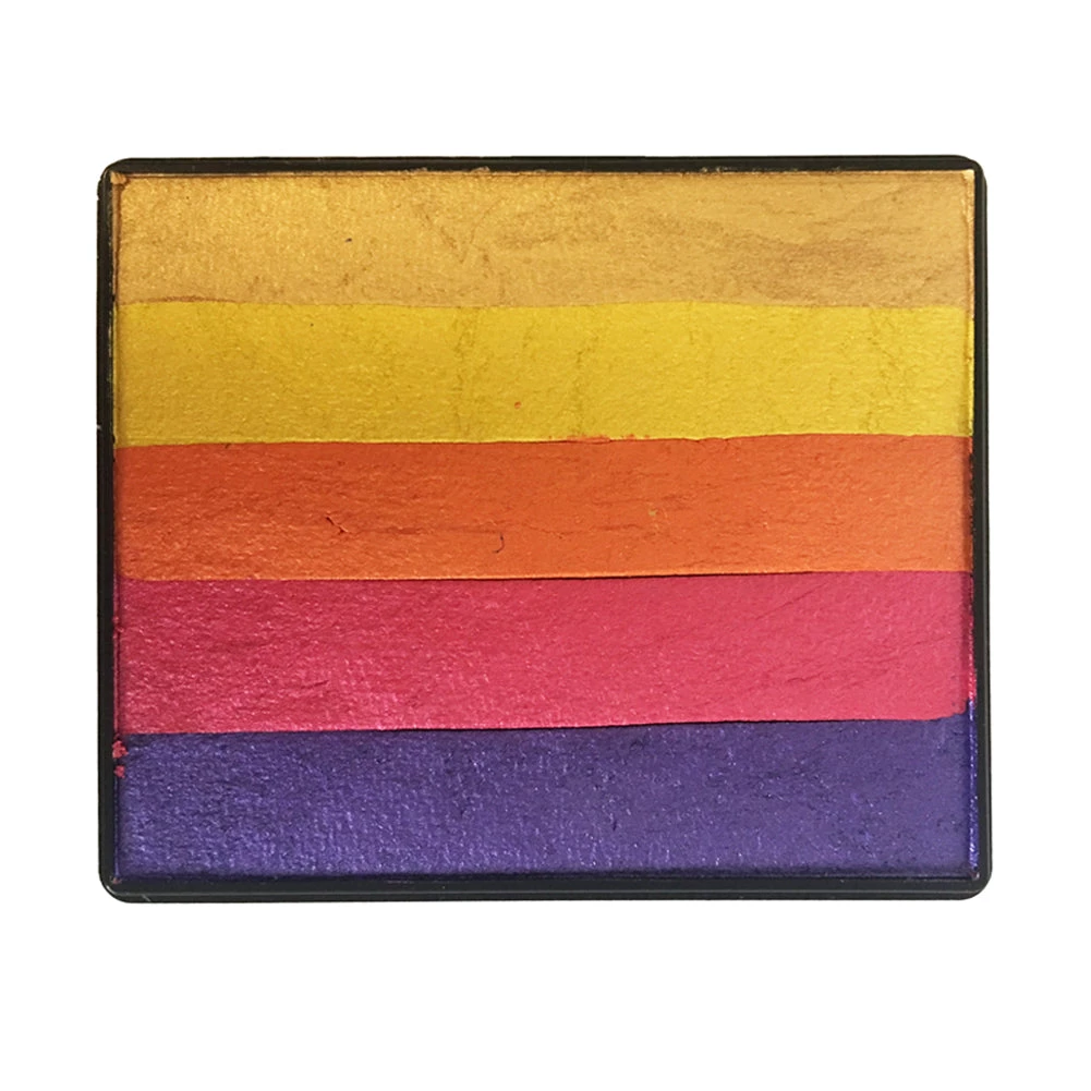Sparkle Dust Split Cakes have changed the way we face paint. Rainbow cakes are multi-colored cakes of face paint that allow you to lay down several colors at once. Just one stroke with a brush and apply to skin, and you have a rainbow. Rainbow cakes are excellent for base work for any design.