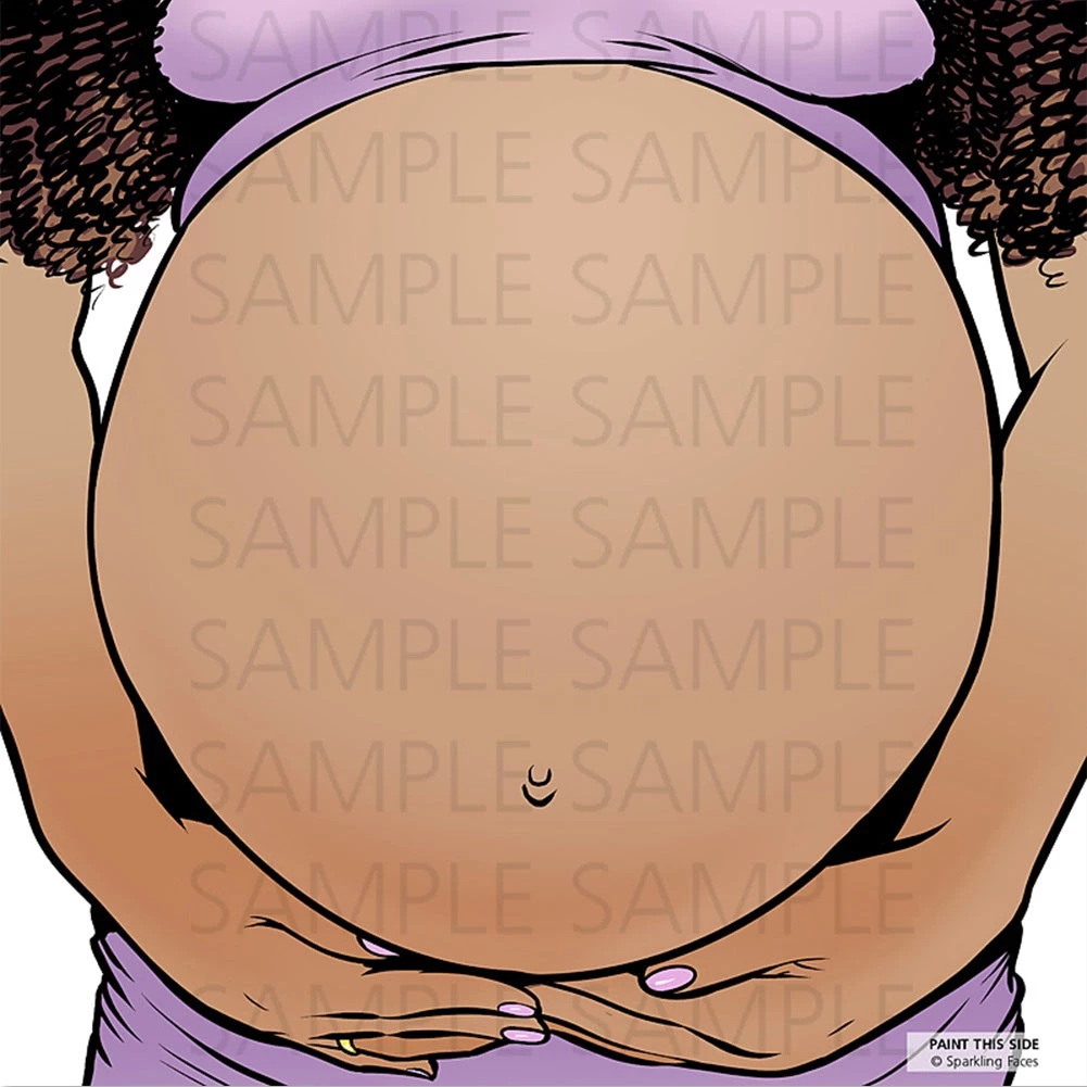 Dark Belly Practice Board from Sparkling Faces shows the front view of a dark skinned, full pregnant belly, for face painters to practice pregnant belly designs. Comes in A3 size – 16.5″ x 16.5″.