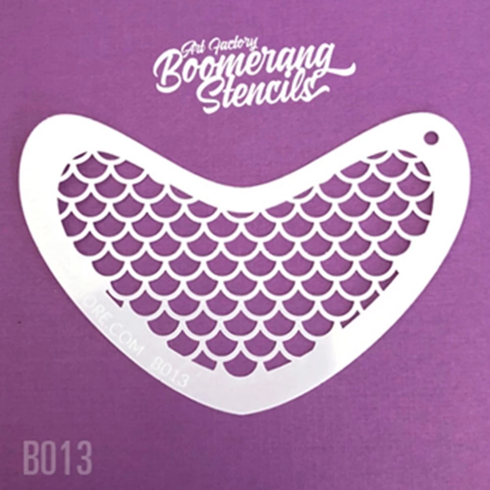 Boomerang Stencils are laser cut, 7.5 mil thick mylar stencils that are designed for quickly adding fun design elements to your face and body art. Boomerang Stencils are super fun and easy to use with face paints using brush, sponge or airbrush. Boomerang Stencils can be easily wipe cleaned and stored and reused multiple times, if handled with gentle care.
