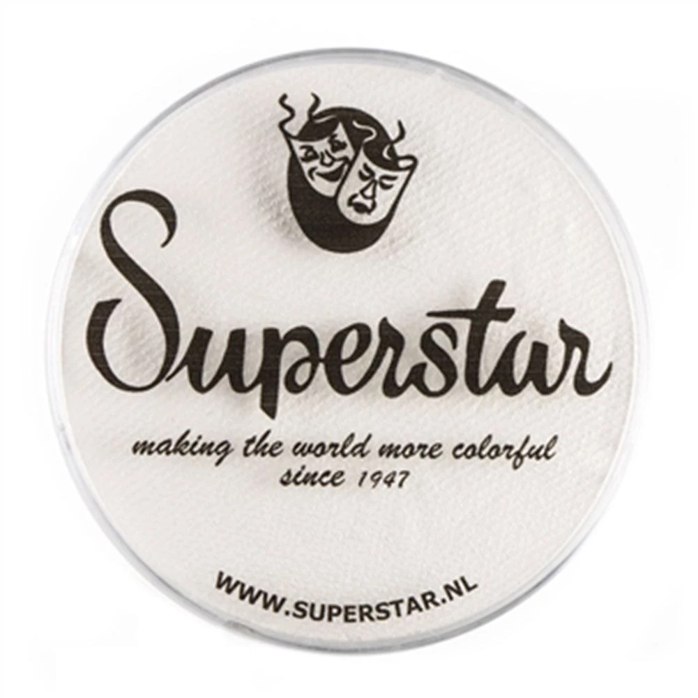 Superstar Aqua Face And Body Paint is an intensely pigmented, glycerin based, water activated face and body makeup that guarantees bold and vibrant coverage with smooth and creamy consistency. Superstar Line White 161 Makeup is ideal for fairs, birthday parties or special occasions. Superstar Aqua Professional Makeup is comparable in consistency and color intensity with Kryolan Aquacolor and Paradise AQ face paints.