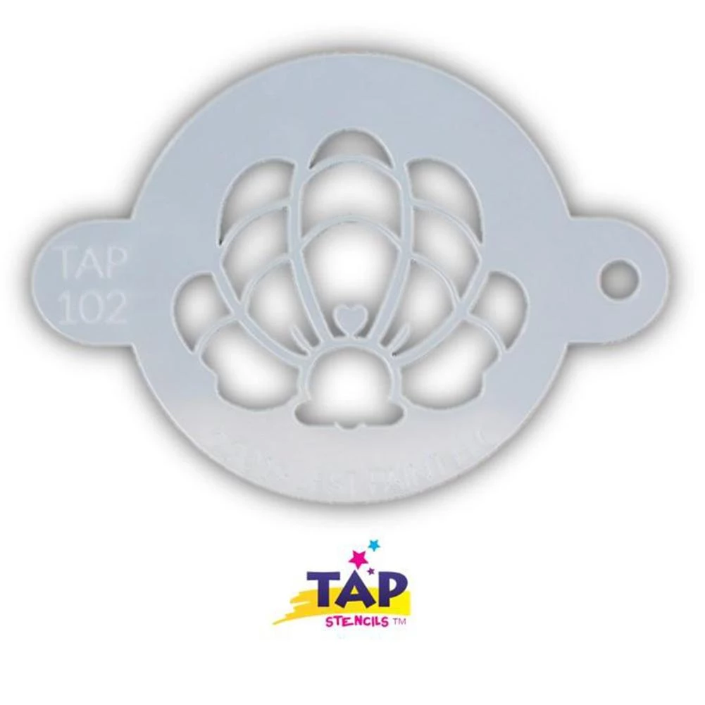 TAP Face Paint Stencil –Â Mermaid Crown Clam Shell (102) is a small stencil that can be used to comfortably add a design accent to any part of your face or arm. TAP Face Paint Stencils are small, flexible mylar stencils that are designed for quickly adding fun design elements to face and body art. They are easy to use with face paints, powders, glitters or temporary tattoo ink. TAP Stencils can be easily wipe cleaned and stored and reused multiple times, if handled with gentle care.