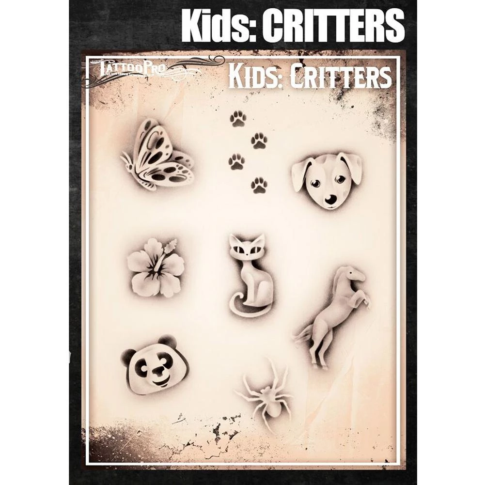 Tattoo Pro Kids Critters Stencil Kit is a special edition stencil sheet with different kid themed stencil designs such as Puppy, Kitty, Butterfly, Flower, Horse, Panda and Spider. Add an element of surprise to your little one’s party with these Kids Series stencils from Tattoo Pro.